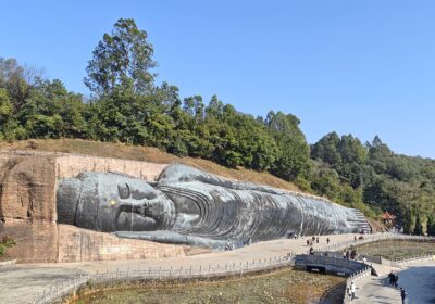 三水大佛建于1994年,现为我国第一大卧佛。大佛依山临水,姿态舒展而从容,表情柔和安详。 据载唐代六祖惠能大师(公元638-713年)云游至三水,梦见佛陀临水而卧,天仙岩紫光耀目。惠能大师来到天仙岩,梦见的圣迹化为天然奇石,横卧于烟云之中。1994年农历四月初八日,大佛依造像仪轨敬造完成并举行了开光…